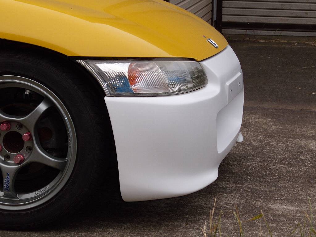 BEAT エアロバンパー ホンダ・ビート用のフロント・エアロバンパー 純正のイメージを踏襲しつつ、シンプルかつ新しいイメージを提供します。 フロア下へと、ジェーターへの整流を行い、ダウンフォースを向上させます。 一般的なFRP製のエアロパーツはガラスマットのみの製品が多いですが、この製品は、ガラスマットをベースに、ガラスクロス、カーボンクロスを使用して、軽量かつ壊れにくい仕様となっています。 ガラスマット+クロス、FRP白ゲルコート仕上げ ドレスアップが主目的のパーツです 外装